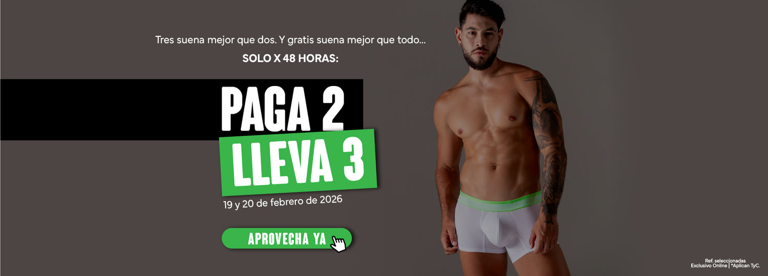 Paga 2 y lleva la 3 ¡Gratis! 🔥 Solo por 48 horas, del 19 al 20 de febrero. Aprovecha y llévate más por menos.