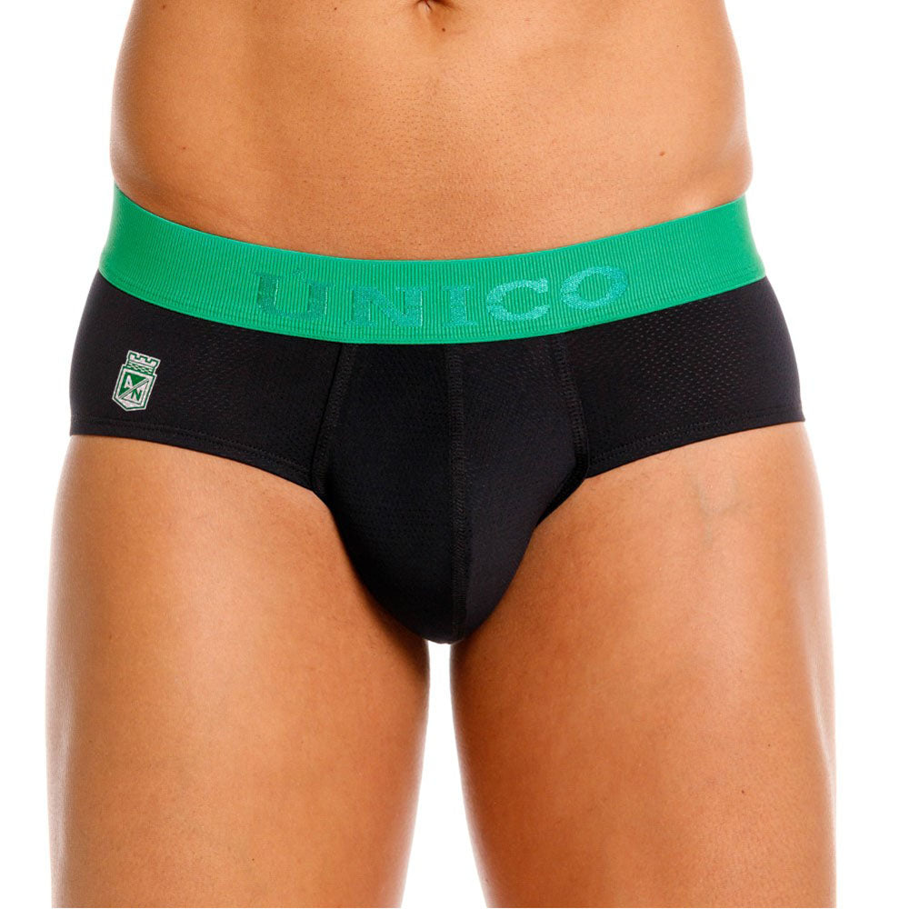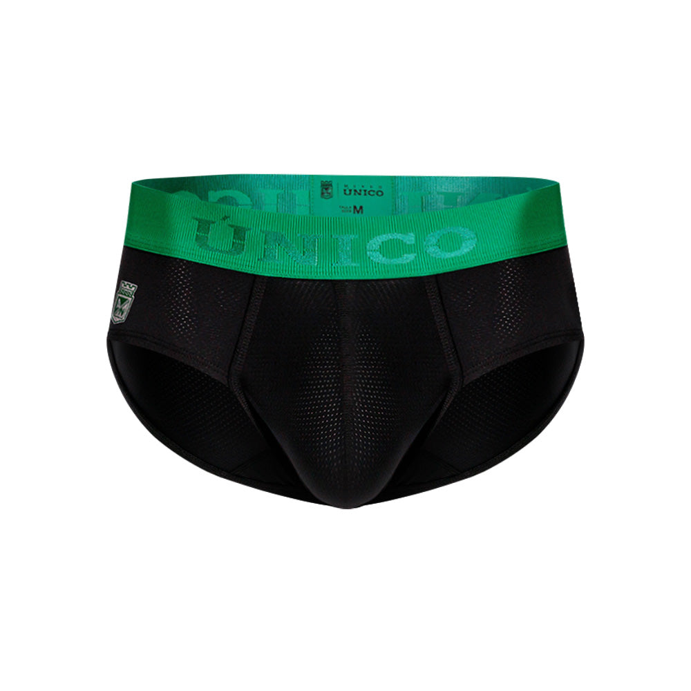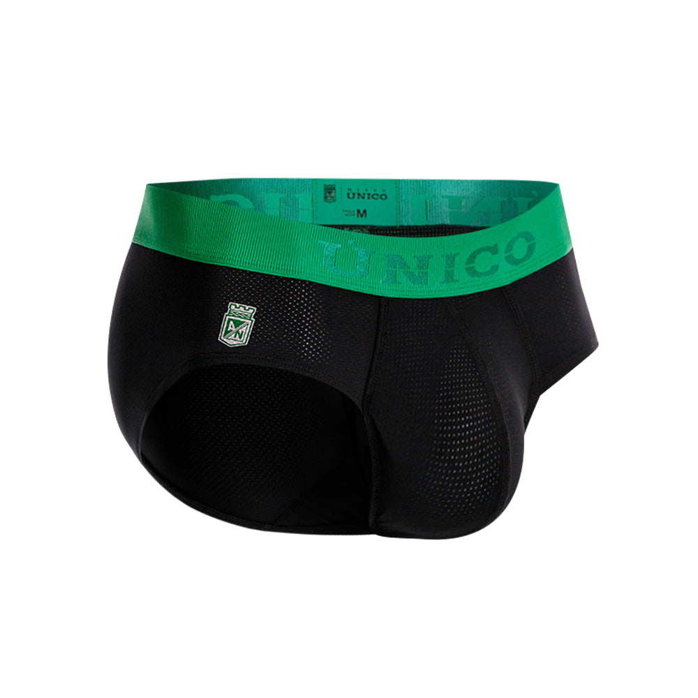 Diseño/Color: Base negra con estampado localizado del escudo de Atlético Nacional y elástico verde contramarcado.