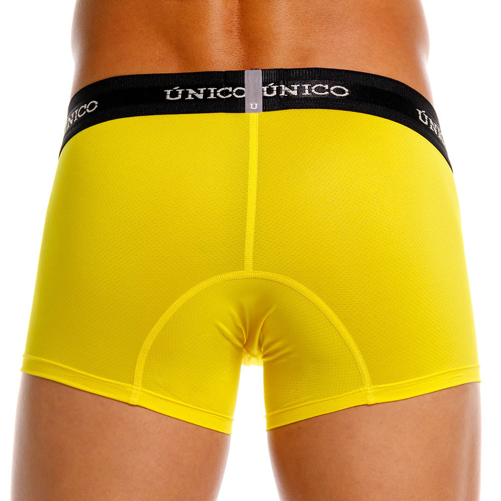 Diseño/color: Tela microperforada amarilla con elástico contramarcado negro.