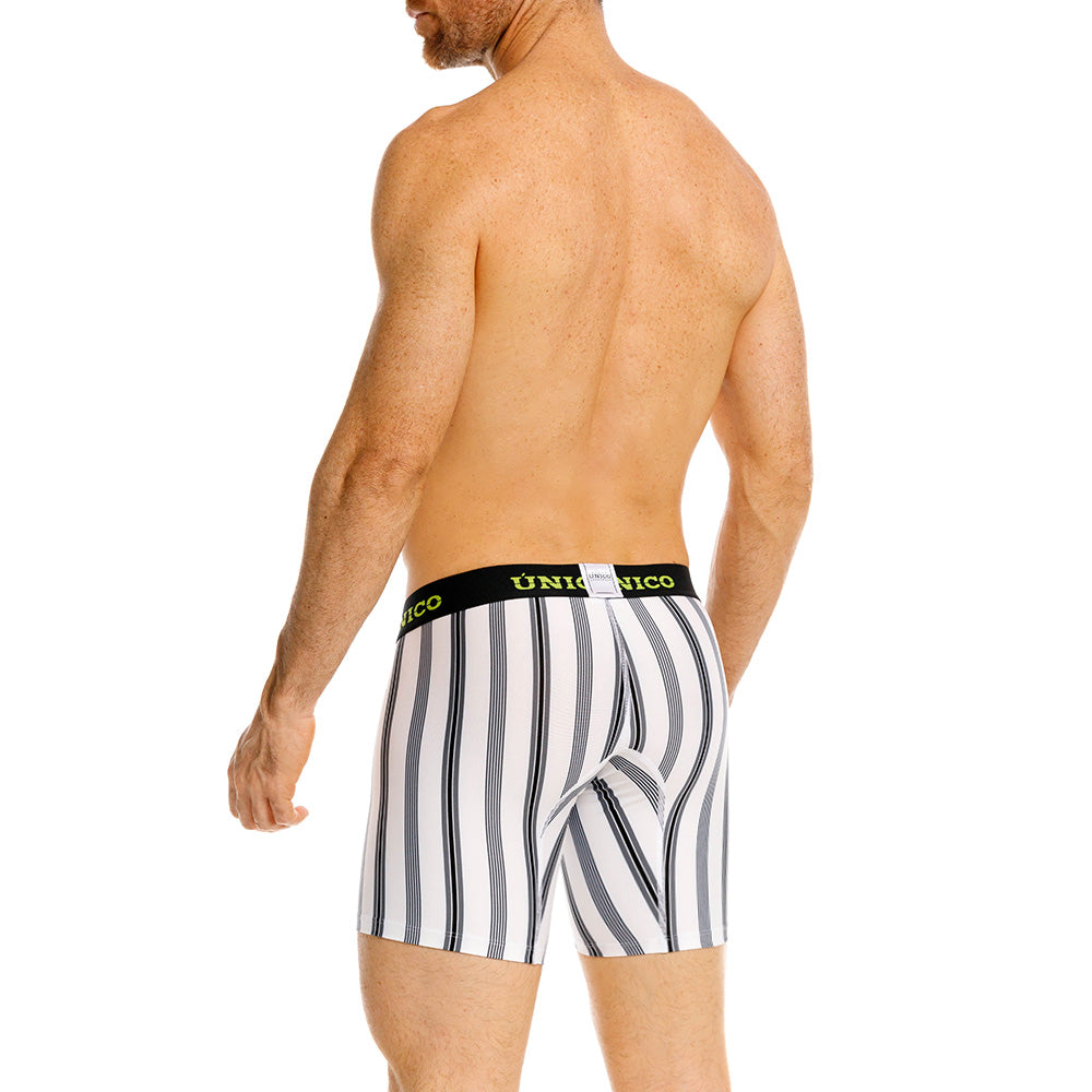 Color: Rayas blancas y negras con elástico negro contramarcado en verde limón.