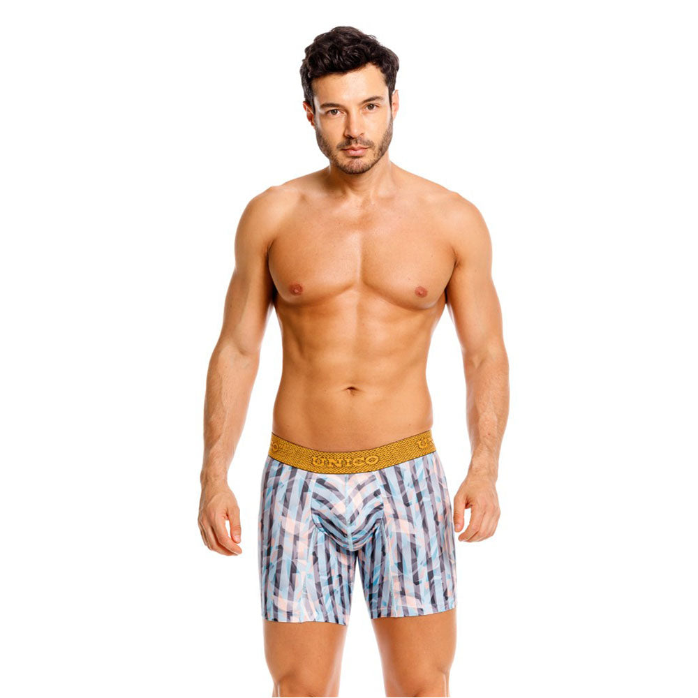 Este bóxer medio en microfibra te brindará una sensación única de frescura y confort gracias sus materiales premium, diseños exclusivos y sus propiedades de transpirabilidad las cuales permiten que el aire fluya. Su elástico no se dobla ni causa sensación de incomodidad, y su copa suspensorio está avalada por urólogos para ayudar a prevenir enfermedades íntimas masculinas.