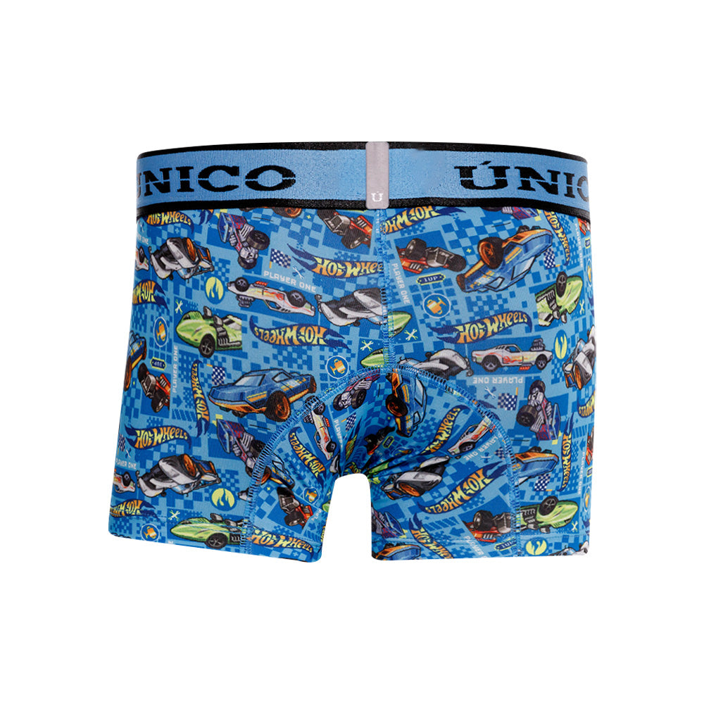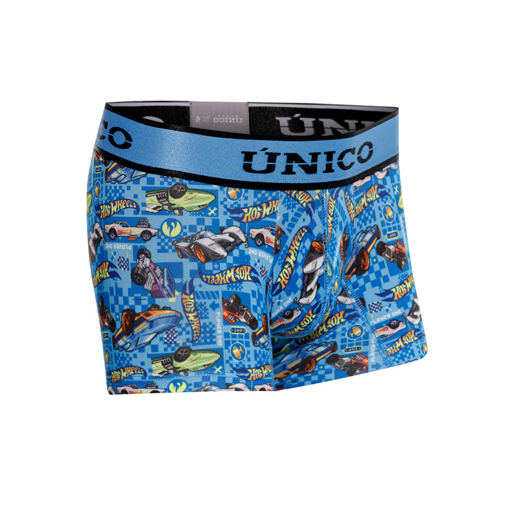 Diseño/Color: Azul con estampado de carros de Hot Wheels y elástico contramarcado.