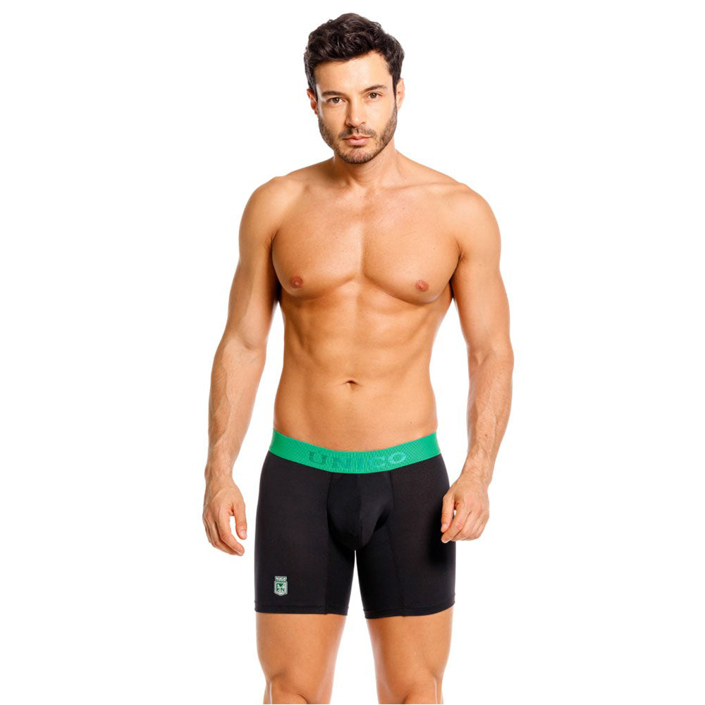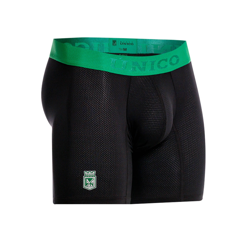 Diseño/Color: Base negra con estampado localizado del escudo de Atlético Nacional y elástico verde contramarcado.