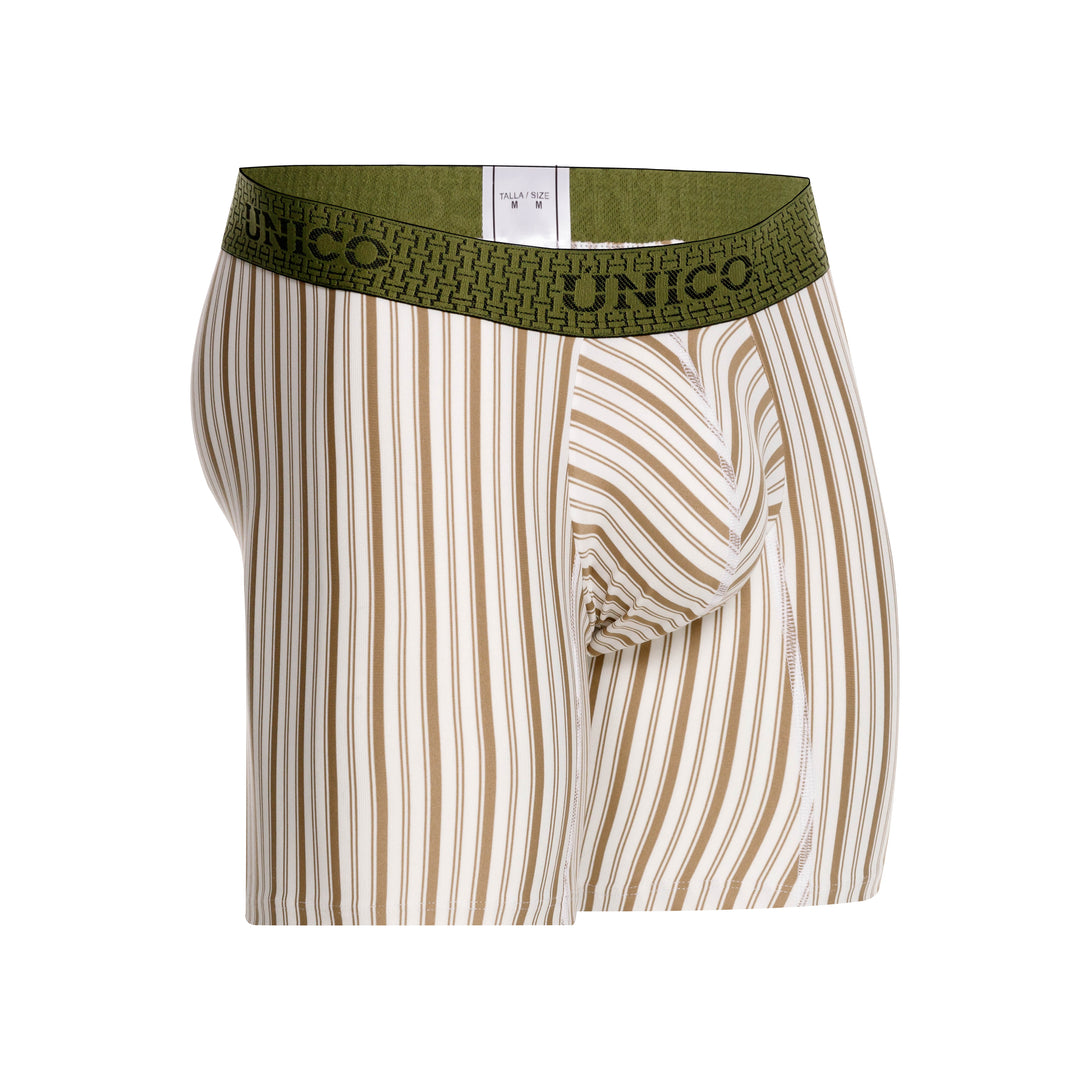 Color: Rayas cafés y blancas con elástico verde contramarcado.