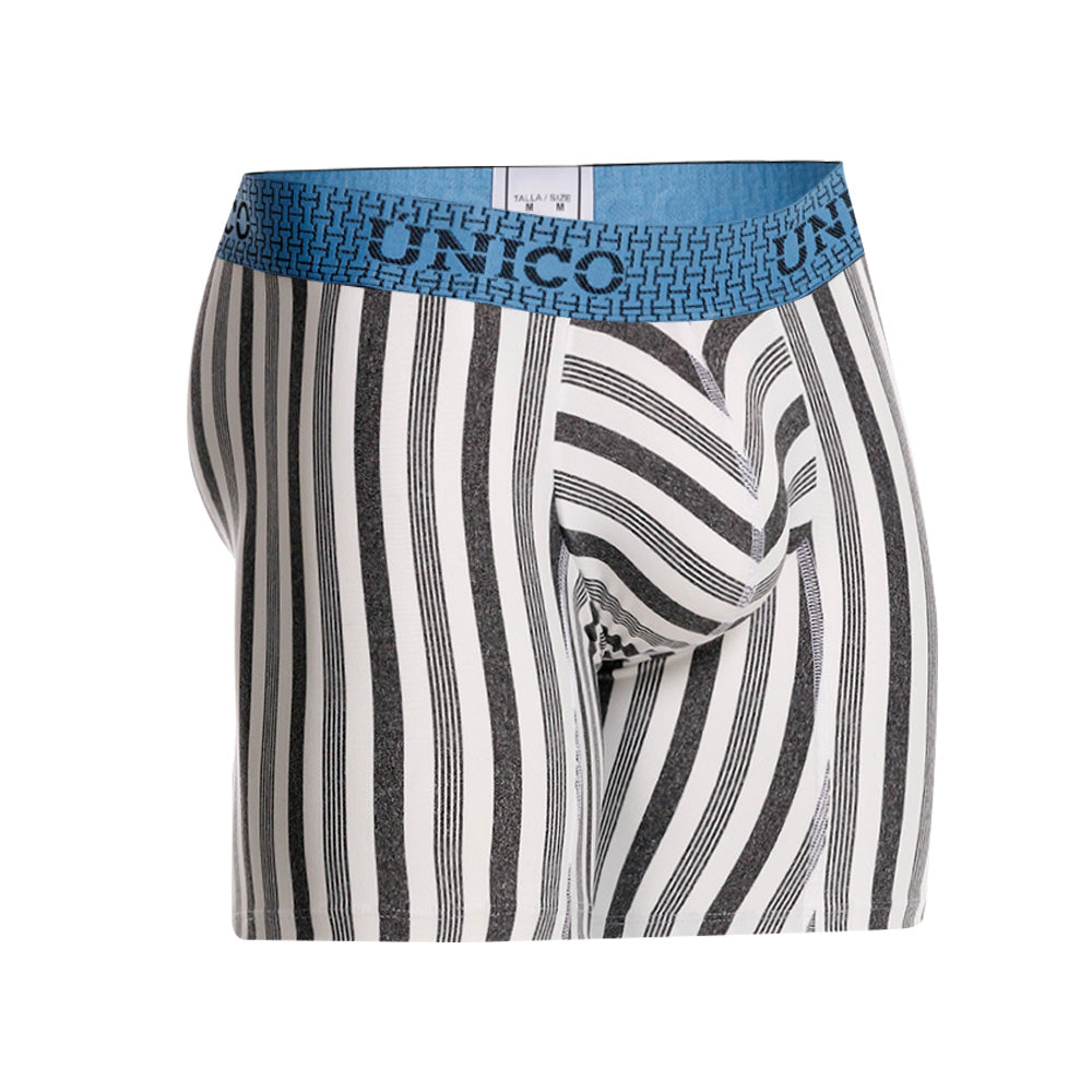 Color: Rayas blancas, grises y negras con elástico azul contramarcado.