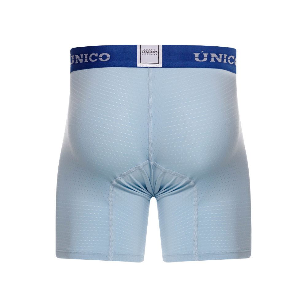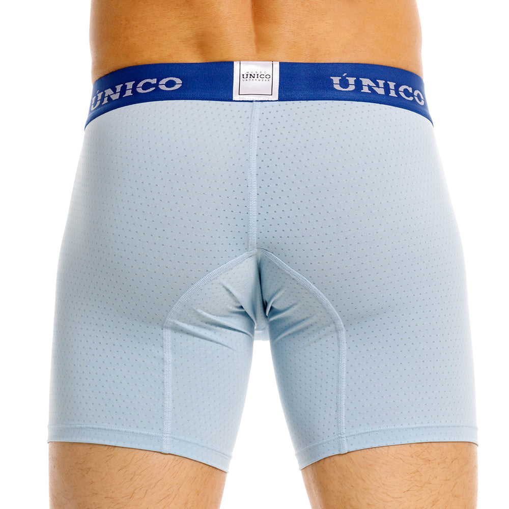 Color: Prenda microperforada azul claro con elástico azul rey contramarcado.