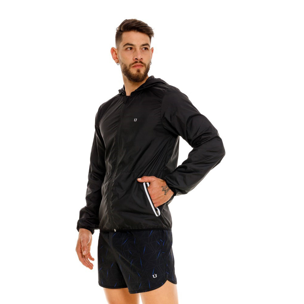 - Diseño y color: Negra impermeable con telas ultra livianas, logo y apliques reflectivos, cierres en bolsillos.